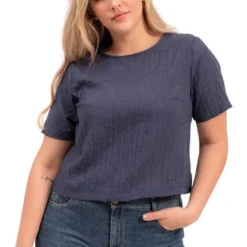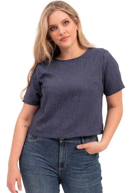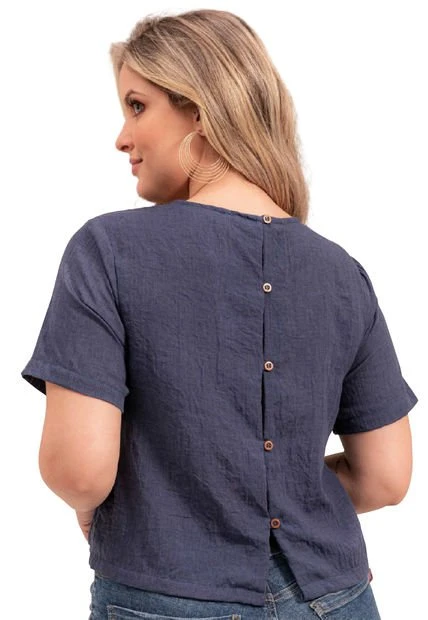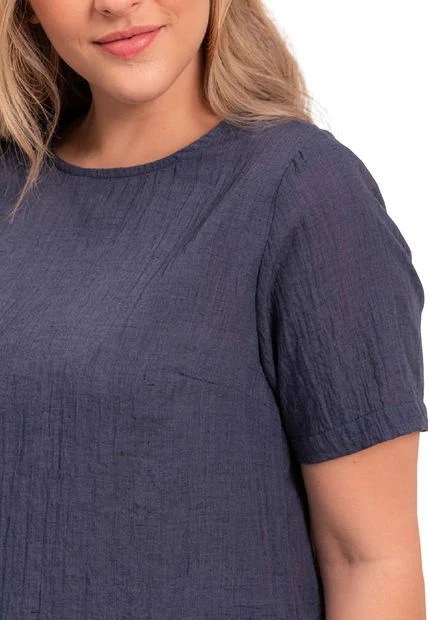 Blusa en voile fondo entero, escote redondo, manga corta, perilla incluida en espalda, silueta cajón