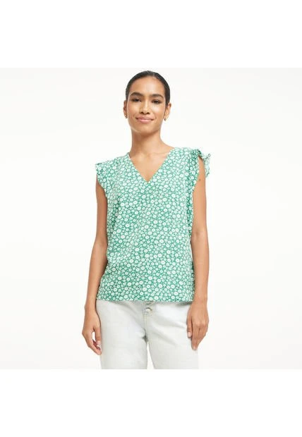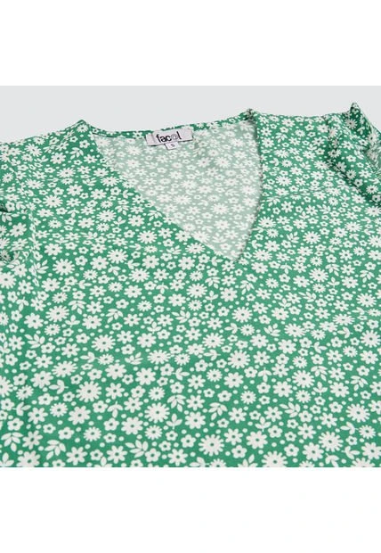 Blusas de mujer con el diseño que más te gusta. Ideal para tus ocasiones casuales. Cuenta con cuello en V que te hará sentir más cómoda y ligera. Manga corta con mini boleros y estampado de flores pequeñas blancas para lucir con todo el estilo en cualquier lugar. Combínala con accesorios y tu pantalón preferido. Color: Verde. Composición: Poliéster 100%. Instrucciones de Lavado: No dejar en remojo Lavar en agua fría separadamente No usar blanqueador No retorcer Secar a la sombra Plancha tibia.