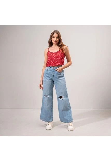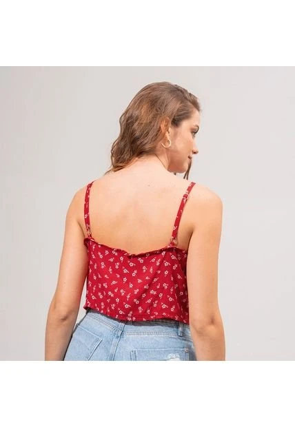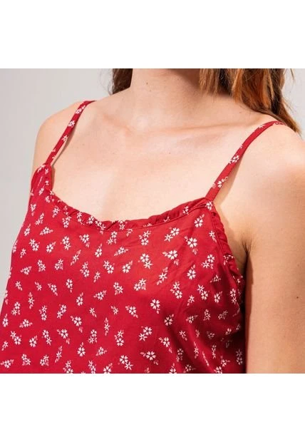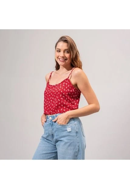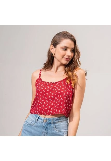 -Blusa de tiras -Largo crop -Silueta semiamplia -Escote redondo -Bolero en escote y ruedo -Tejido plano con caida estampado mini print floral -Color rojo Material: VISCOSA 100%