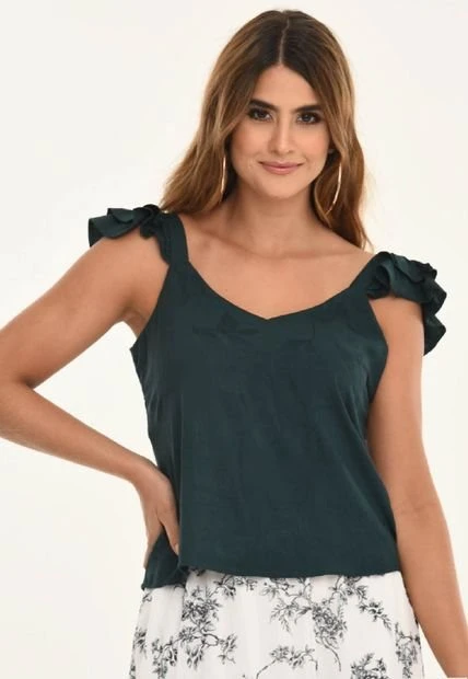 Blusa en chalis fondo entero, escote en V, tiras con doble bolero
