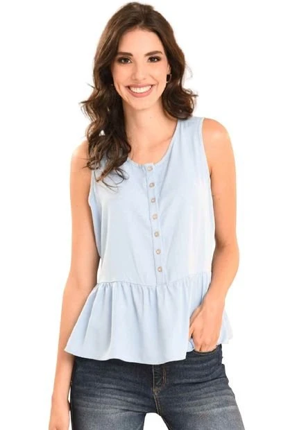 Blusa en chalis fondo entero, cuello sesgado redondo, manga sisa, perilla con botones, bolero en ruedo