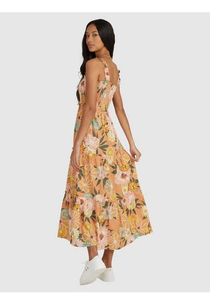 Disfruta de la playa con el vestido largo Sunnier Shores para mujer. El vestido escalonado está confeccionado con una suave tela de viscosa de algodón y presenta un corpiño fruncido favorecedor con una falda escalonada, lo que lo hace perfecto para los cálidos días de verano.