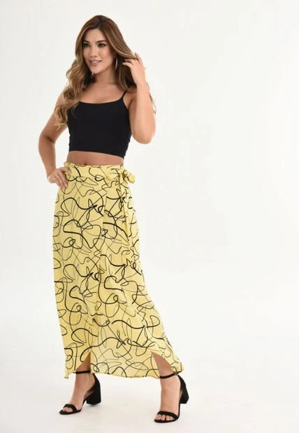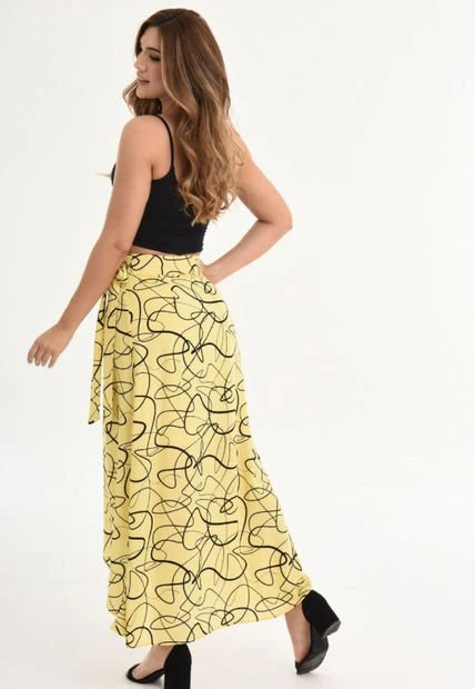 Falda en chalis estampado tipo wrap, forrada, amarre lateral. RAGGED es una empresa competitiva y sólida que cuenta con más de 30 años de experiencia con su propuesta de diseño y moda,