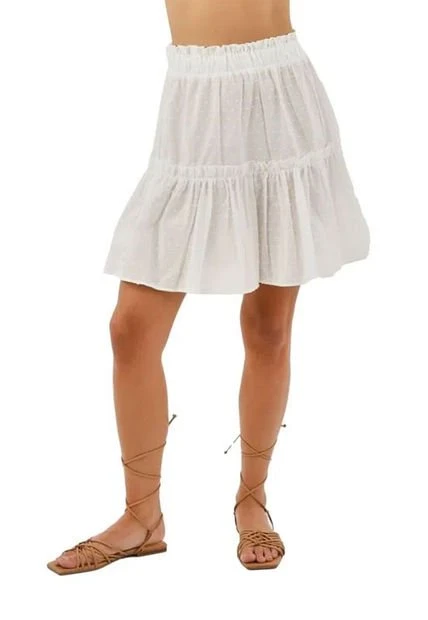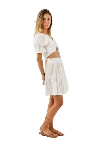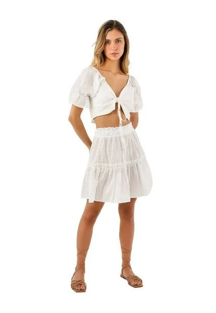 La falda Bianco está confeccionada en un cómodo ojalillo, esta falda es lo suficientemente alta para usar con algúna blusa o top cropped, El diseño escalonado le da volumen a la falda haciendola más comoda y fresca, mientras que la cintura elástica hace que sea fácil de poner y quitar. Además, la cintura forrada proporciona mayor comodidad cuando hace calor. Tanto para salir por la noche como para ir a la oficina, la falda corta Bianc para mujer es un básico que no puede faltar en tu armario.