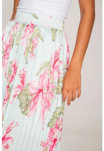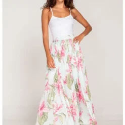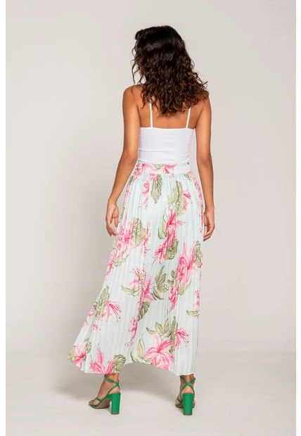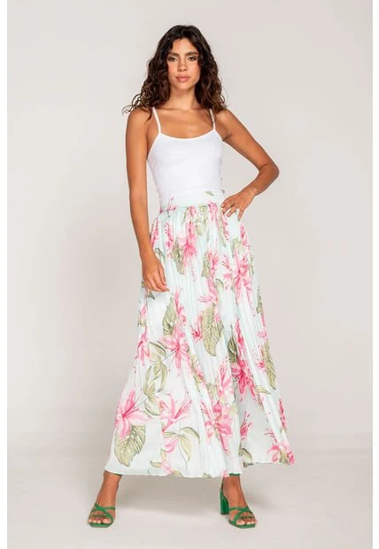 Falda para mujer larga plisada y estampada con elástico en cintura. Silueta amplia. Una prenda que elevará tu look en instantes y te hará ver más natural y elegante. Muy versátil y que puedes lucir tanto en contextos formales como informales. Si buscas un outfit cómodo y femenino, llévalo con un jersey de cuello alto de lana y añade unos botines, y tendrás un look trendy y cálido para tu día a día.
