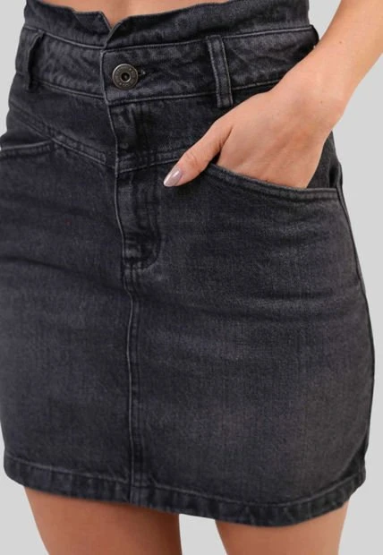 Falda corta en denim fondo entero, bolsillos delantero en diagonal, bolsillos parche en posterior, detalle de cotilla en frente y en posterior, pasadores y botón en pretina, cierre frontal. RAGGED es una empresa competitiva y sólida que cuenta con más de 30 años de experiencia con su propuesta de diseño y moda,