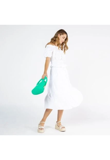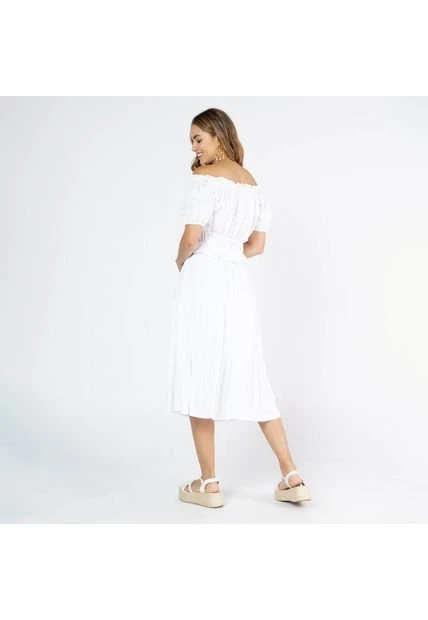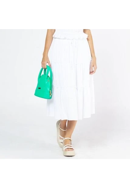 FALDA MIDI BLANCA PARA MUJER CON FAROLES Y ELASTICO EN CINTURA – VISCOSA 100%