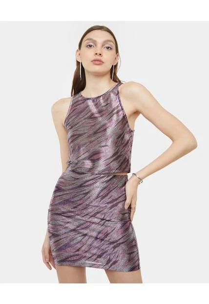 Falda Mini Forrada Cintura Elástica Acabado Bajo Dobladillo Tejido Fantasía Brillos. Composición: Poliéster 55%–Fibras Metalizadas 45% Color: Morado Instrucciones De Lavado: No Dejar En Remojo. Lavar En Agua Fría Separadamente. No Usar Blanqueador. No Retorcer. Secar A La Sombra. Plancha Tibia.