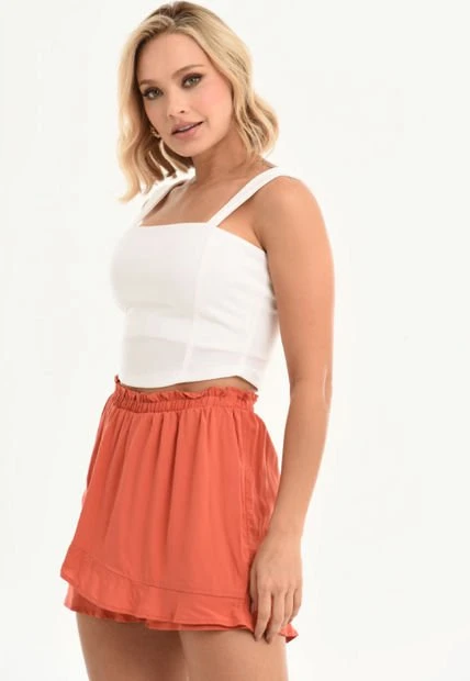 Falda short en chalís fondo entero, pretina resortada, rouche en la misma tela, capa sobre puesta en la parte delantera, bolero en ruedo, silueta semi ajustada. RAGGED es una empresa competitiva y sólida que cuenta con más de 30 años de experiencia con su propuesta de diseño y moda,
