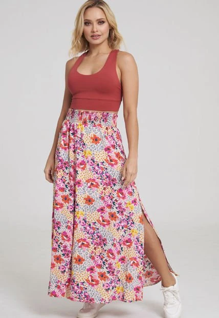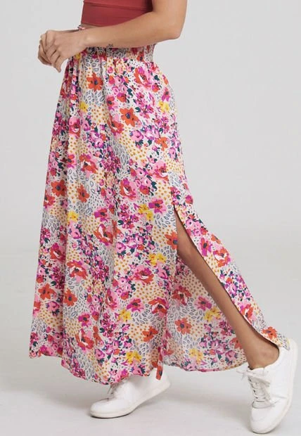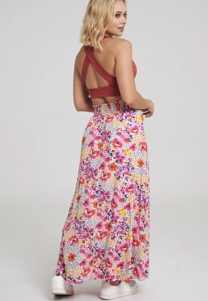 Falda en chalís estampado con forro interno, pretina resortada, aberturas laterales. RAGGED es una empresa competitiva y sólida que cuenta con más de 30 años de experiencia con su propuesta de diseño y moda,