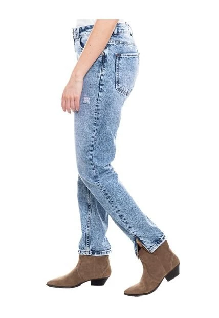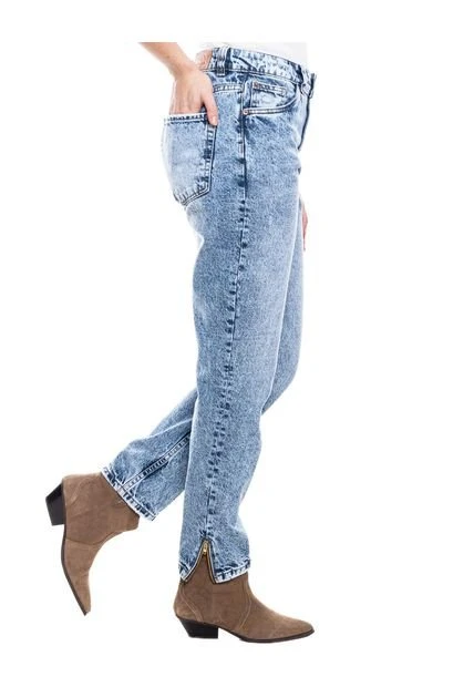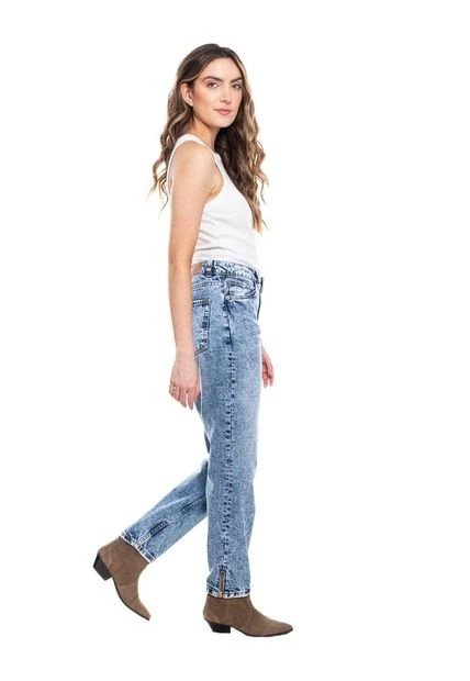 High waist straight jean rigido diagonal marcada. Esta prenda está hecha con el corazón por manos Colombianas.