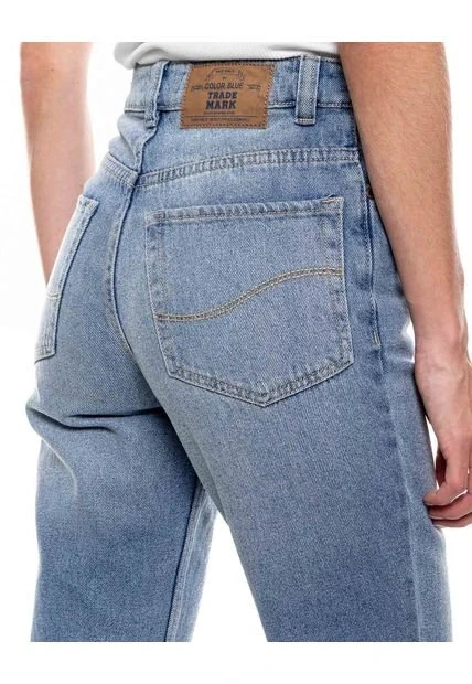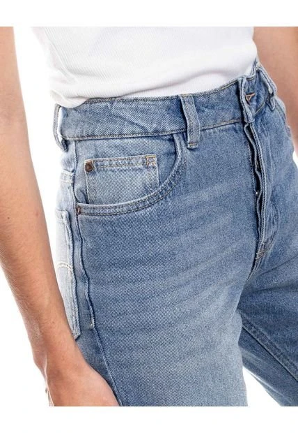 High waist straight jean denim lavado tono medio con botonadura interna. Esta prenda está hecha con el corazón por manos Colombianas.