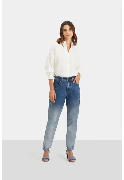Un diseño depurado de silueta mom fit semiholgada. Nuestro jean es elaborado en denim rígido y cuenta con un efecto metalizado degradado que eleva la propuesta y le agrega un toque de moda diferenciador y exclusivo. Además, integra en su composición bolsillos posteriores en parche, bolsillos curvos delanteros y marquilla en cuero, siendo ideal para llevar con botines y chaqueta de cuero, en looks casuales más elegantes.