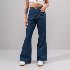 -Jean Momfit bota amplia Talle alto -Tono medio -Bolsillos parche frontales -Tejido plano 100 algodon Material: 100% ALGODON