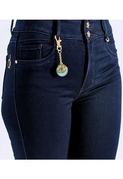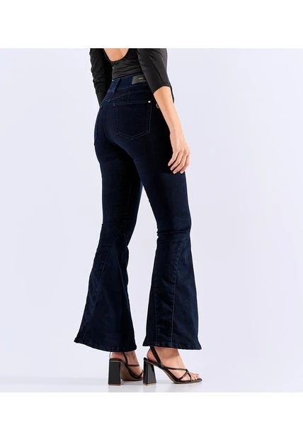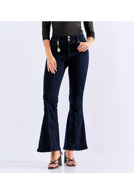 Descripción del producto: jean para mujer tiros altos, con realce pull-up, bota flare, proceso oscuro y llavero obsequio derek