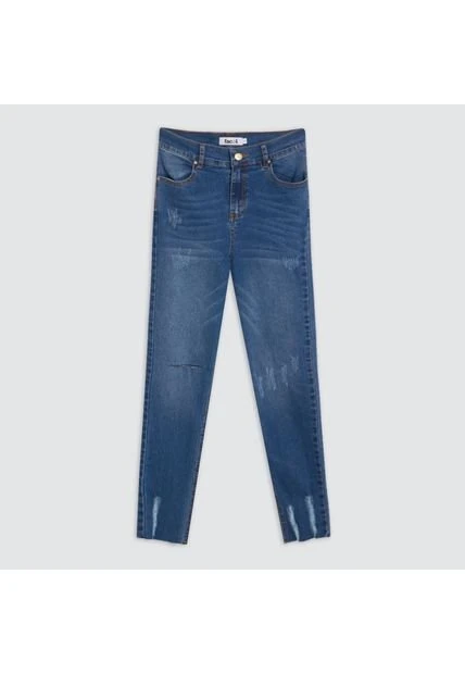 Jean para Mujer skinny tono azul claro con rotos. Jean con cremallera delantera y botón metálico. No dejar en remojo, lavar en agua fría separadamente, no usar blanqueador, no retorcer, secar a la sombra. Plancha tibia.