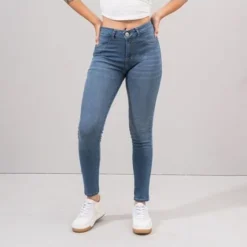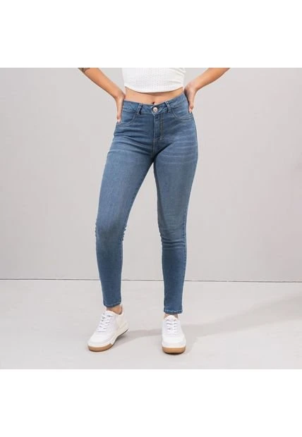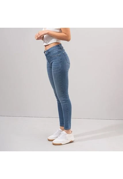 -Jean Skinny Talle medio -Tono claro -Con desgaste de lavanderia -Tejido plano con elongacion Material: Algodón 89% Poliéster 9% Elastano 2%