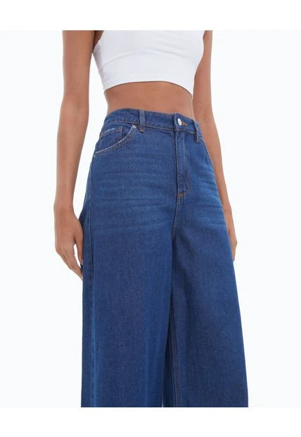 Jean Mujer Extra Wide Leg Tono Azul Medio Oscuro Con Desgastes De Lavandería, Cremallera Y Botón Metálico En Cierre. Composición: Algodón 100% Color: Azul Instrucciones De Lavado: No Dejar En Remojo. Lavar En Agua Fría Separadamente. No Usar Blanqueador. No Retorcer. Secar A La Sombra. Plancha Tibia.