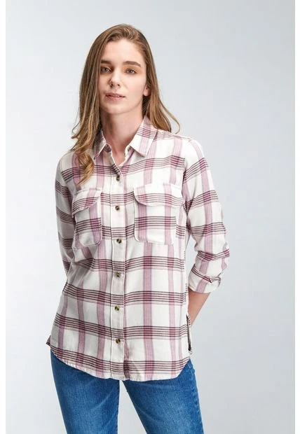 Blusa en tela fluida de cuadros, manga larga cuello camisero.