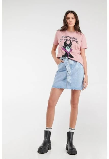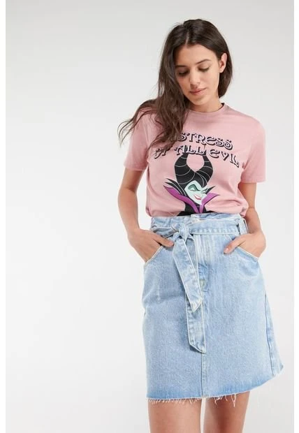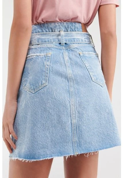 Falda de jean para mujer, 5 bolsillos, tiro alto, con proceso de lavado y cinturón.