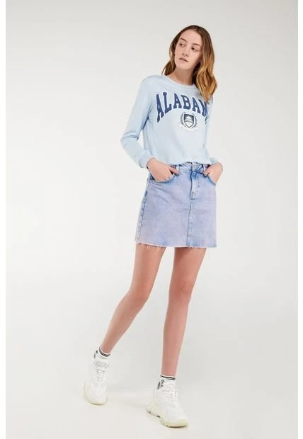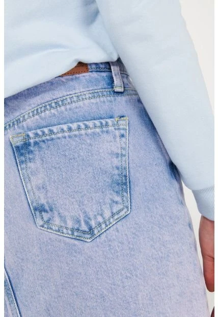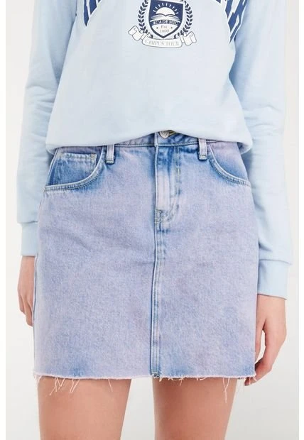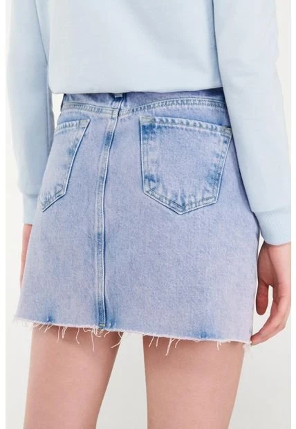 Falda de jean para mujer, 5 bolsillos, tiro alto, con proceso de lavado y teñido.