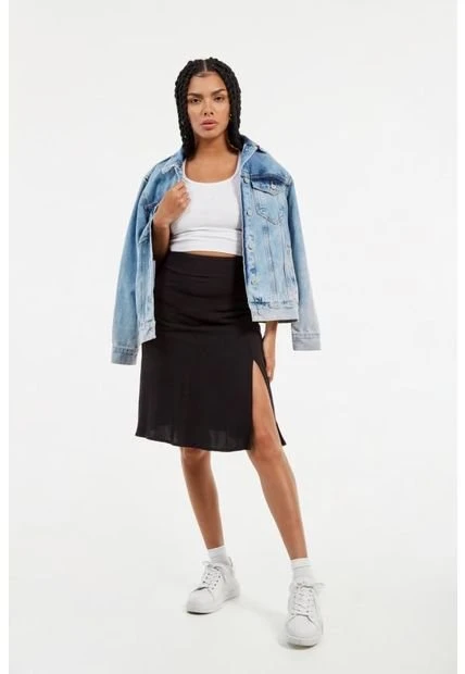 Falda corta para mujer en tono negra cuenta con una elaboración en tela viscosa, un diseño con abertura en frente y una horma ajustada que realzará la silueta de tus piernas. Esta prenda será perfecta para llevar a tus planes casuales o cotidianos. ¡Con una blusa estampada y unos tenis crearás un total look glamuroso!