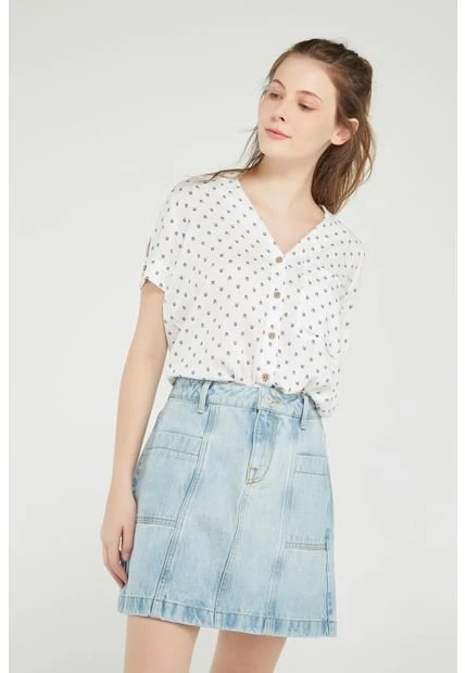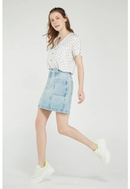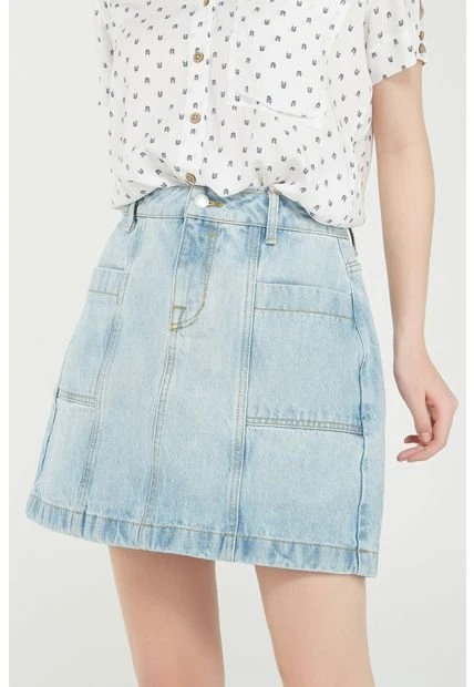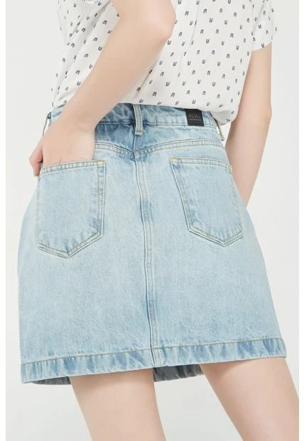 Falda para mujer, en tela de cuerpo con procesos de lavado y laser, tiro alto, y corte tipo A.