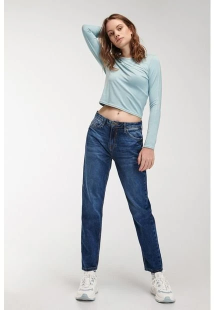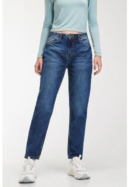 Jean para mujer, 5 bolsillos, tiro alto con lavado medio.