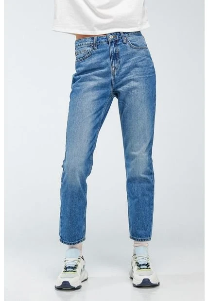 Jean para mujer, 5 bolsillos, tiro alto con lavado claro.