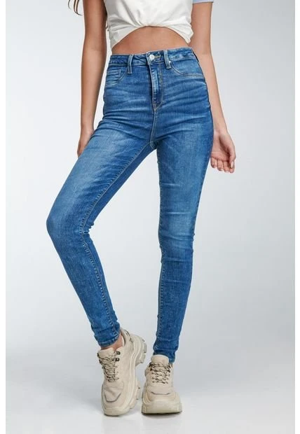 Jean para mujer, 5 bolsillos, tiro super alto, ajuste ceñido con lavado azul claro