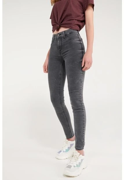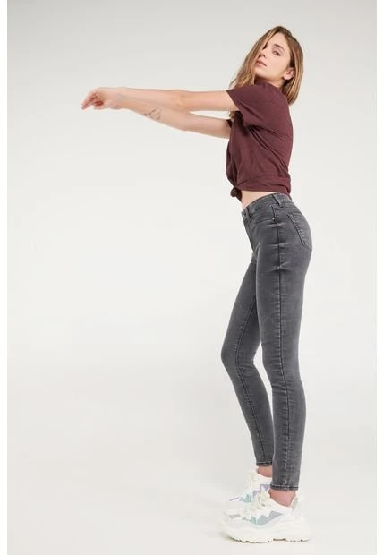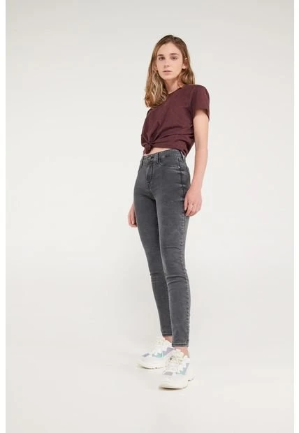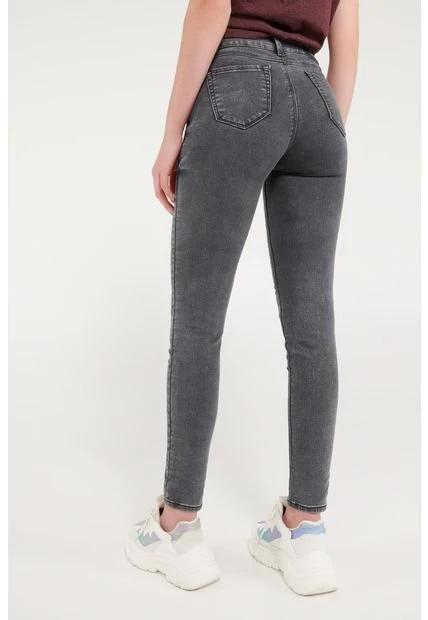 Jean para mujer, 5 bolsillos, tiro alto, ajuste ceñido con lavado gris