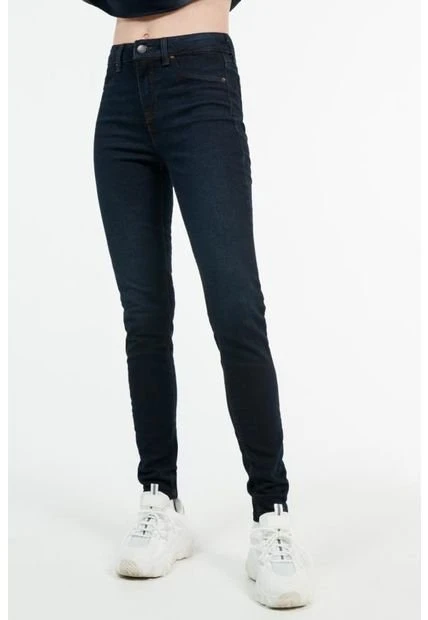 Jean para mujer, 5 bolsillos, tiro alto, ajuste ceñido con lavado azul intenso sin rotos