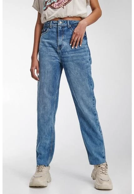 Jean mom fit para mujer, 5 bolsillos, super tiro alto, con proceso azul claro
