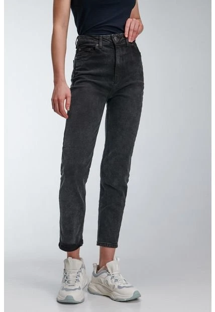 Jean mom fit para mujer, 5 bolsillos, super tiro alto, con proceso negro