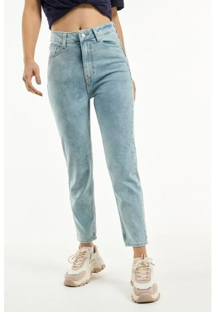 Jean mom azul claro para mujer, confeccionado en tela de algodón y con un fit levemente holgado al cuerpo, tiene diseño de bota recta, 5 bolsillos y tiro súper alto. Añade un suéter cuello redondo a tu total look y dale un toque de encanto a tu estilo. ¡Lucirás estupenda en tus planes del día a día!