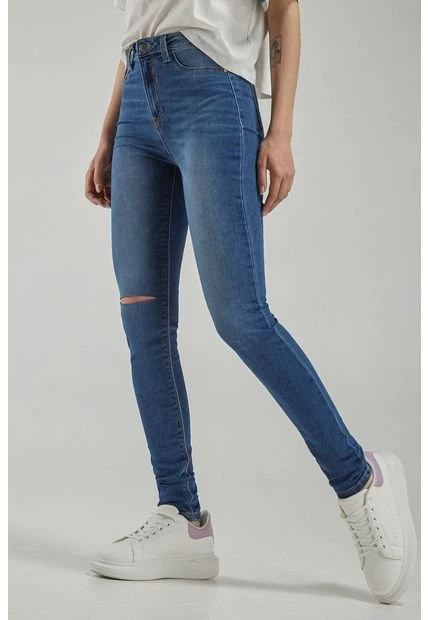 Jean Cropped para mujer, 5 bolsillos, tiro alto, con proceso de lavado y rotos.