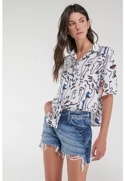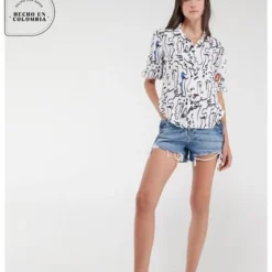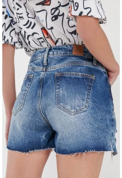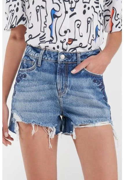 Short para mujer, 5 bolsillos, tiro alto, con bordado y proceso en botas.