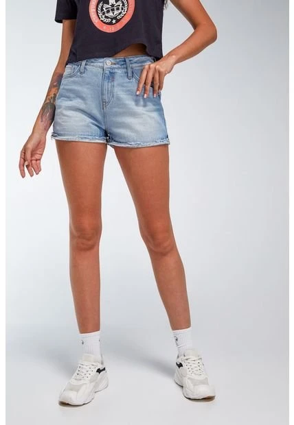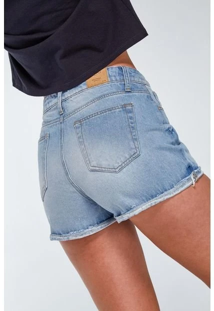 Short para mujer, 5 bolsillos, tiro alto, con lavado azul muy claro.