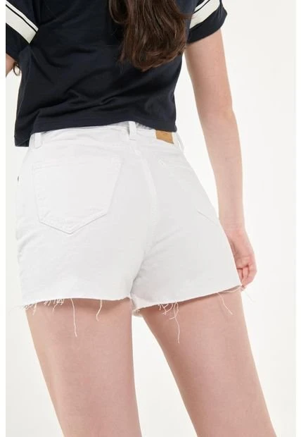 Short femenino, 5 bolsillos, tiro alto, blanco.