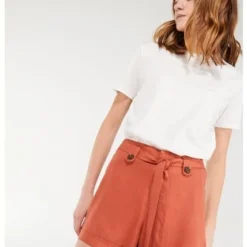 Short super tiro alto para mujer, con cinturón y bota doblada.