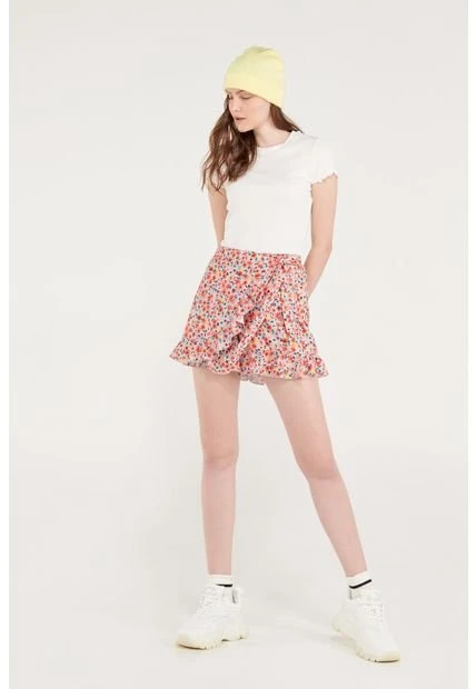 Short tipo falda tiro alto para mujer, con boleros y cinturón.