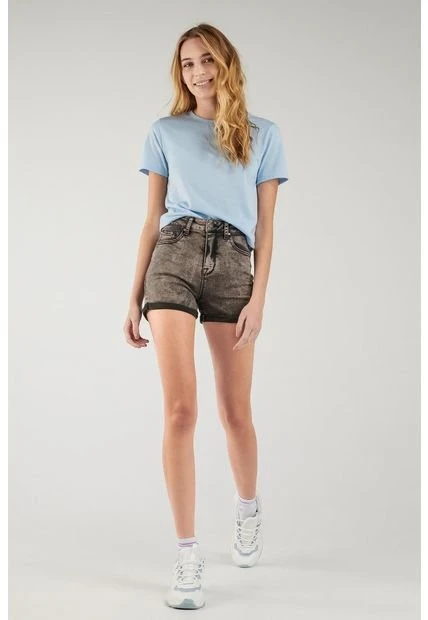 Short para mujer en denim, 5 bolsillos, tiro medio, con lavado gris