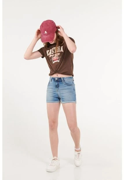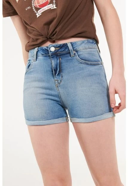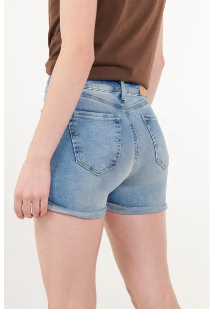 Short para mujer, 5 bolsillos, tiro medio, con lavado claro