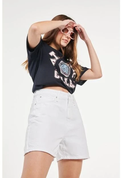 Short para mujer, 5 bolsillos, tiro alto, con lavado.