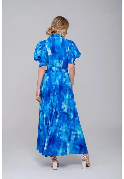 Maxi vestido Camisero estampado para mujer con manga corta englobada tipo manga Farol. Cuello camisero. Tiene cinturón con hebilla cuadrada forrada en la misma tela y bolsillos en los costados. Perilla de botones para usarlo como vestido o Kimono sobrepuesto. Corte recto. Silueta semi-ajustada. Una prenda ideal para una ocasión especial como matrimonio, bautizo o cumpleaños de día. Luce este vestido con tacones sandalia blancos.