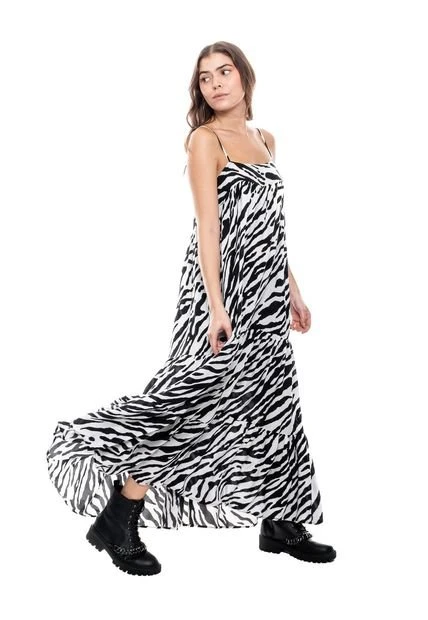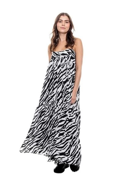 Maxi vestido de tiras escote recto. Esta prenda está hecha con el corazón por manos Colombianas.