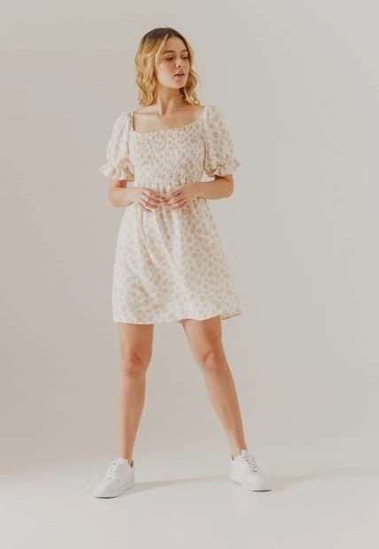 Vestido Beige-Blanco People Éxito