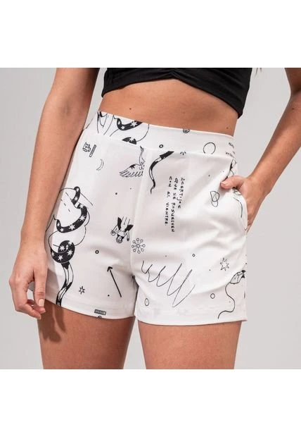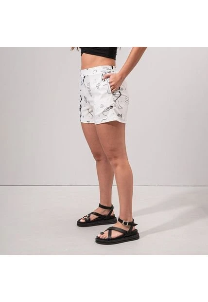 -Short talle alto -silueta amplia -cintura con elastico en posterior -bolsillos laterales -Tejido plano con caida estampado maxi print conexion -Color Ivory Material: POLIESTER 93,87% ELASTOMERO 6,13%