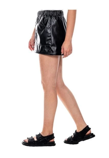Shorts con elástico en cintura efecto cuero. Esta prenda está hecha con el corazón por manos Colombianas.