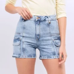 Descripción del producto: short para mujer en indigo confortable, con bolsillos tipo cargo en laterales y proceso derek